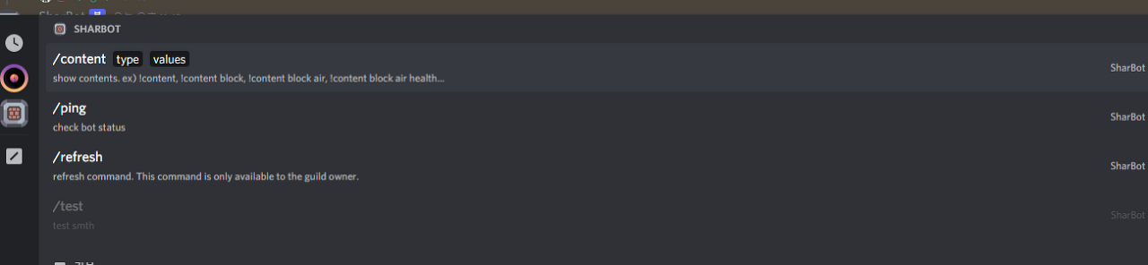 내일은 모든 명령어를 등록할 생각입니다. 슬레쉬 명령어는... 영어로 하고 싶네요. 너무 힘들어요