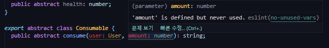 원래 새 콘텐츠를 만들려고 했습니다. 비록 어제 3개의 아이템을 더 추가했지만 겨우 포션과 잡탬이였기 때문이죠. 가장 중요한 방어구와 액세서리 추가와 관련 시스템을 만들려 했지만 그전에 코드를 어떻게든 개선했어야 했습니다. 사방에 any와 as가 널려있어 익셉션 터지는걸 조잡하게 막아놓고 어떤 건 심지어 unknown으로 형 변환해서 원하는 인터페이스로 다시 형 변환을 했습니다. 여기서 콘텐츠를 늘리면 언젠가 큰 뇌진탕이 올 것을 직감했고, 이전에 들었던 eslint를 알아봤습니다.