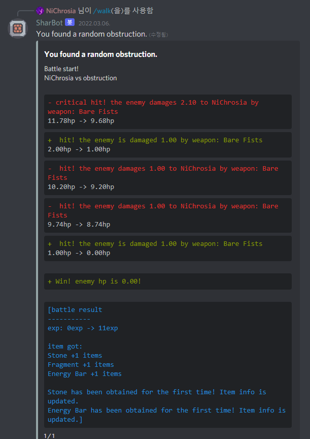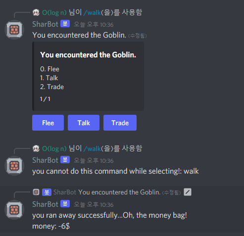 선택지 결과 메시지를 임베드에 포함시켰습니다.