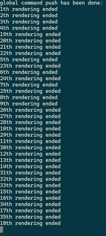 아래와 같이 렌더링 순서가 꼬이는 것을 막기 위해 queue로 렌더링을 선입 후출 시키고 interval에서만 렌더링을 하도록 변경한 결과 비동기화가 많이 개선되었습니다.
