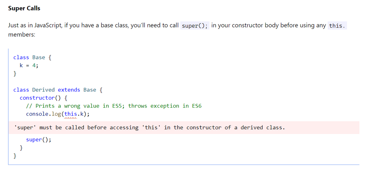 https://www.typescriptlang.org/docs/handbook/2/classes.html#super-calls