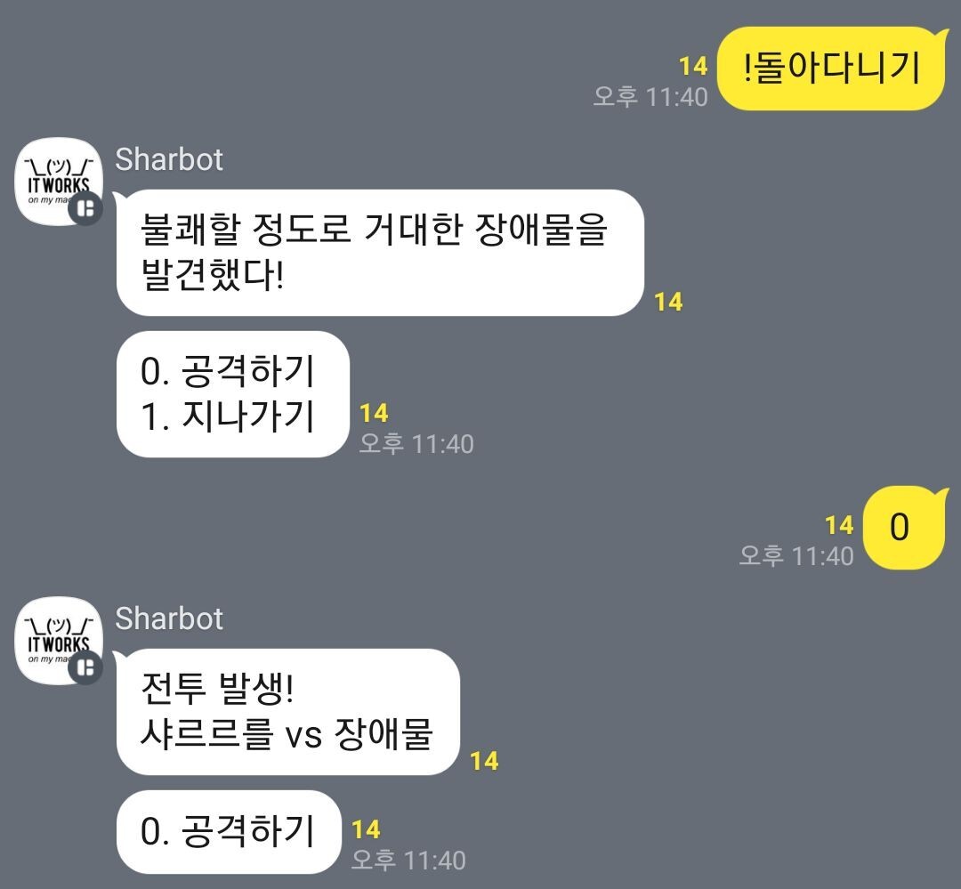 공격히기 상태창이 표시되자마자 초기화되버리는 버그가 존재해서 아직 반쪽짜리입니다. 장애물 이벤트를 통해 전투 시스템의 초석을 다질 예정이며, 최종적으로 돈을 털어가던 고블린에게 응징할 수 있는 선택지를 추가할 예정입니다.