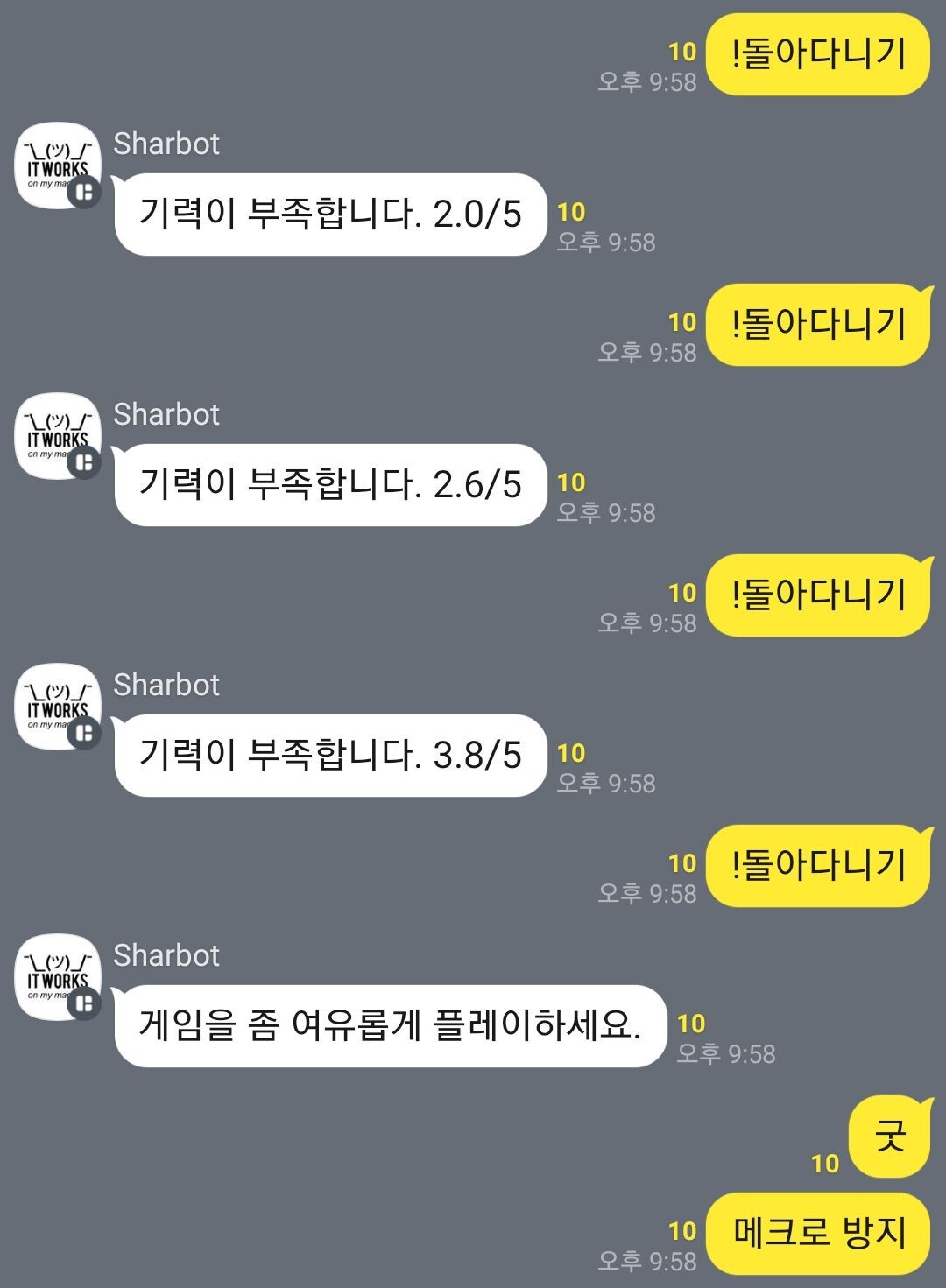 기력부족 메시지를 3연속 출력하면 4번째에 경고음이 뜹니다. 이래도 계속하는걸 보면 더 강화할 필요가 있습니다.